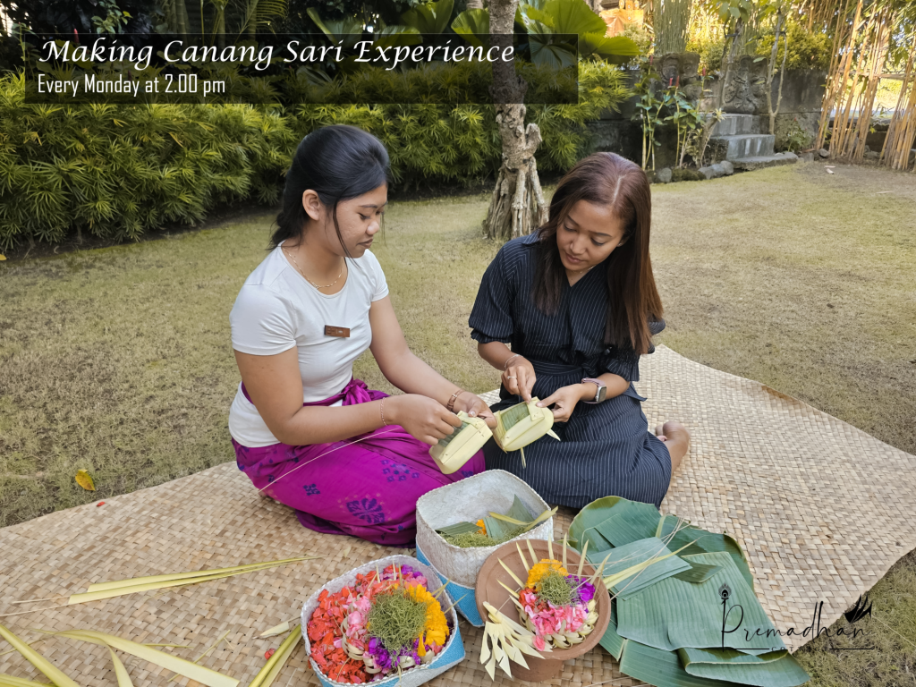 Immerse yourself in the rich culture of Bali as you learn traditional heritage of creating CANANG SARI. Unleash your creativity and lets connect with Balinese tradition at Premadhan Cottage family, only for our inhouse guest.